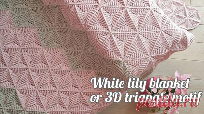 Crochet 3D Triangle | White Lily Blanket | Join triangles as you go! Crochet Triangle or 3D Triangle MotifWhite Lily Blanket or Afghan. Another method on how to join 3D triangles to make a blanket!This motif can be used to mak...