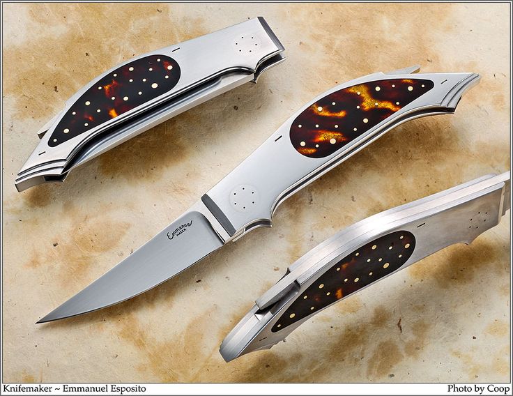 Нож складной от Emmanuel Esposito. Рог буйвола. Всечка золотом.