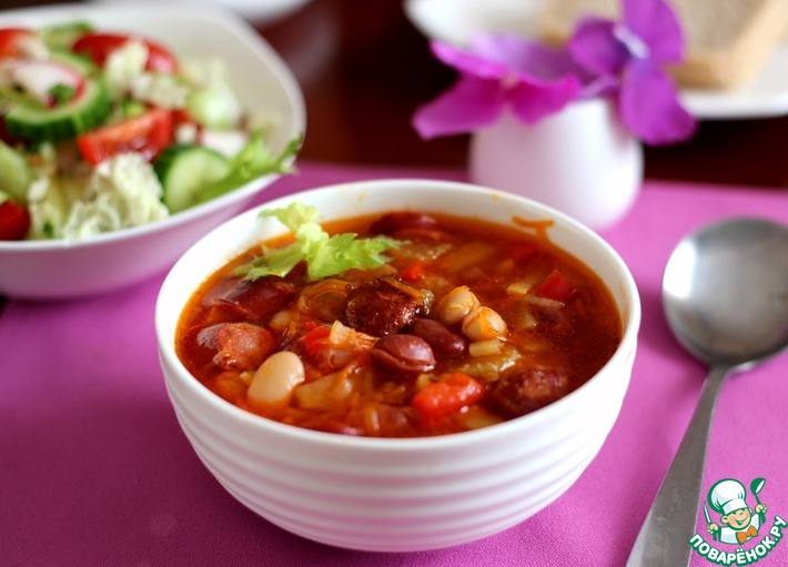 Фасолевый суп с охотничьими колбасками Кулинарный рецепт