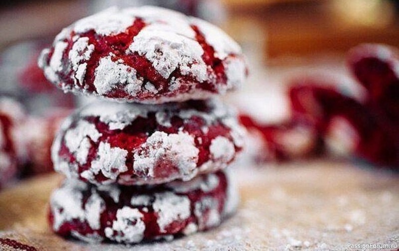 Печенье "Красный бархат" Время приготовления: 30 минутПорций: 8Вам потребуется:-3 стакана муки,-0,3 стакана порошка какао,-2,25 ч.л. разрыхлителя,-0,25 ч.л. соды,-0,5 ч.л. соли,-1,3 стакана сахара,-180 г сливочного масла, нарезанного кубиками,-3 яйца комнатной температуры,-1-2 ст.л. молока,-1 ч.л. ванильного...