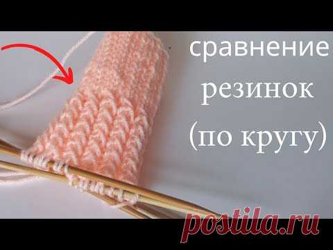 Какая огромная разница. Красивая резинка 2 на 1 по кругу для носков или варежек. спицами. 217