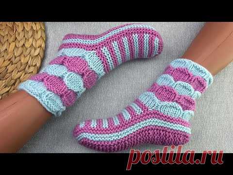 Вяжем ИЗ ОСТАТКОВ ПРЯЖИ. Домашние следки-носки на ДВУХ СПИЦАХ. Мастер класс