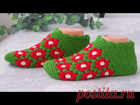 Самые удобные следки тапочки крючком. Вязание крючком для начинающих. Knitted slippers!
