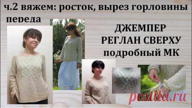 Джемпер Реглан сверху спицами Подробный МК Росток горловина спинки переда часть 2 Подробный МК по джемперу (свитеру) реглан сверху ( спицами ) с расчетами - подойдет даже для начинающих. Вяжем подробно по петлям росток и горловину спинки, ...