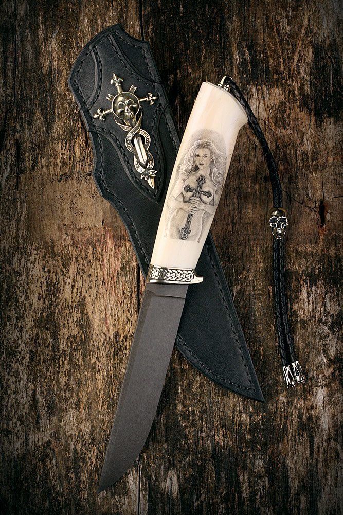 Нож финский «Порок». Булат. Рог. Скримшоу.
