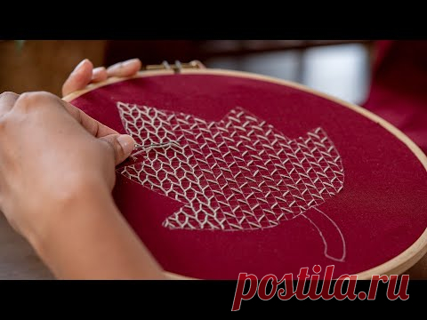 Elegant Leaf Embroidery Pattern - Easy Grid Based Needlework