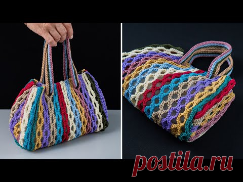 Как легко связать крючком разноцветную сумку из остатков пряжи! Miarti🧶