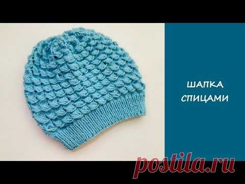 Простая шапка круговыми спицами | Объемный узор