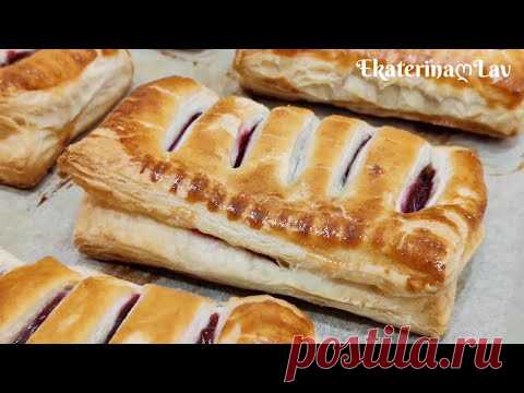 ТАК ВКУСНО И ЛЕГКО! Слойки с вишней! Быстрые пирожки из слоеного теста! Puff pastries with cherries!