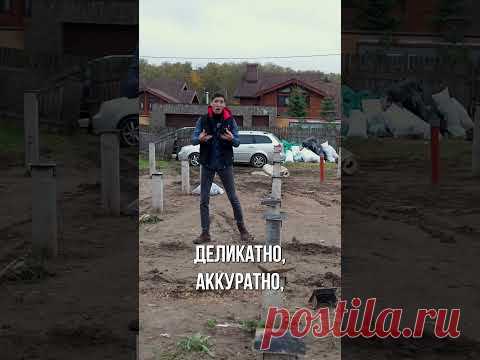 Человек на строительной площадке, перед ним текст: "Деликатно, аккуратно".