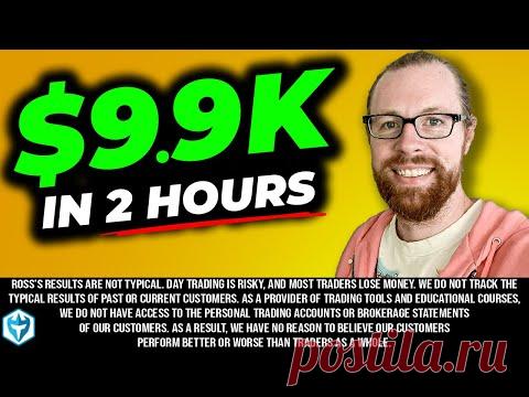 Изображение рекламного баннера с текстом о доходе в $9,9K за 2 часа и предостережениями о рисках дневной торговли. На фото человек в очках и розовой толстовке.