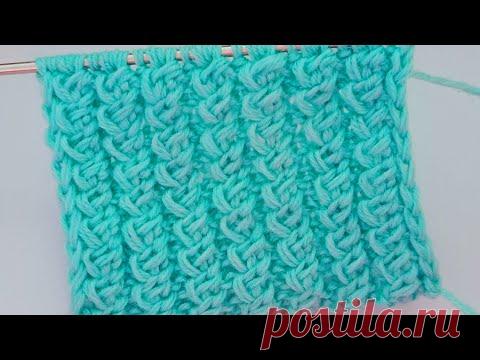 Красивый, рельефный узор спицами. 4 петли и 2 ряда.