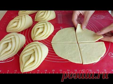 На изображении показаны кусочки теста на красной силиконовой поверхности, часть которых свернута в форму розочки. Руки складывают один из кусочков теста.