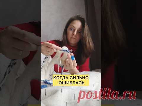 Женщина занимается вязанием, выражая удивление. Текст на изображении гласит: "КОГДА СИЛЬНО ОШИБЛАСЬ".