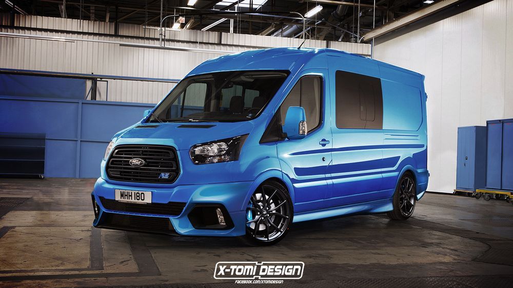 Изображение показывает синий фургон с аэродинамическим дизайном, находящийся в гараже или мастерской.