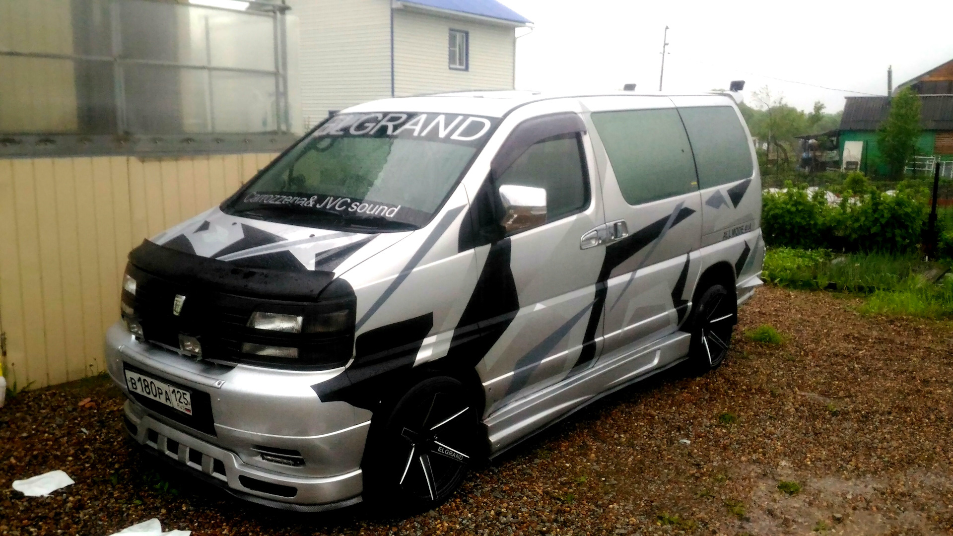 На изображении показан автомобиль с аэрографией, припаркованный на гравийной дорожке возле дома. Автомобиль белого цвета с черными узорами и имеет наклейку "GRAND" на лобовом стекле.