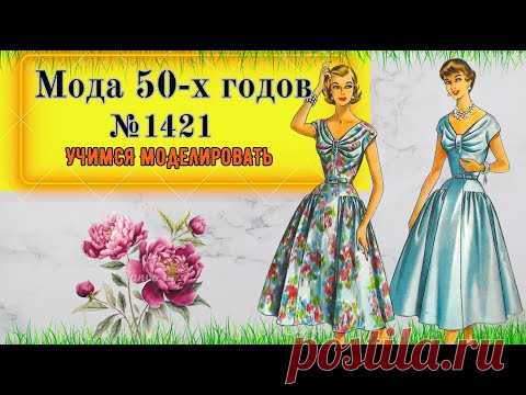 Мода 50-х возвращается. Драпировка по лифу, подрезной бочек со сборкой по юбке. Моделирование № 1421