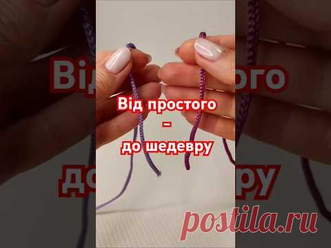 Две руки держат фиолетовые шнурки. На изображении надпись на украинском языке: "Від простого - до шедевру".