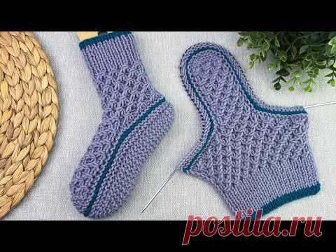Супер простые вязаные носочки. Вязание спицами. Подробный мастер класс.