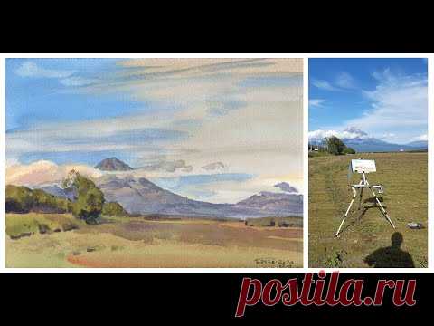 20240903 Field near Elizovo, Kamchatka. Watercolor plein air painting