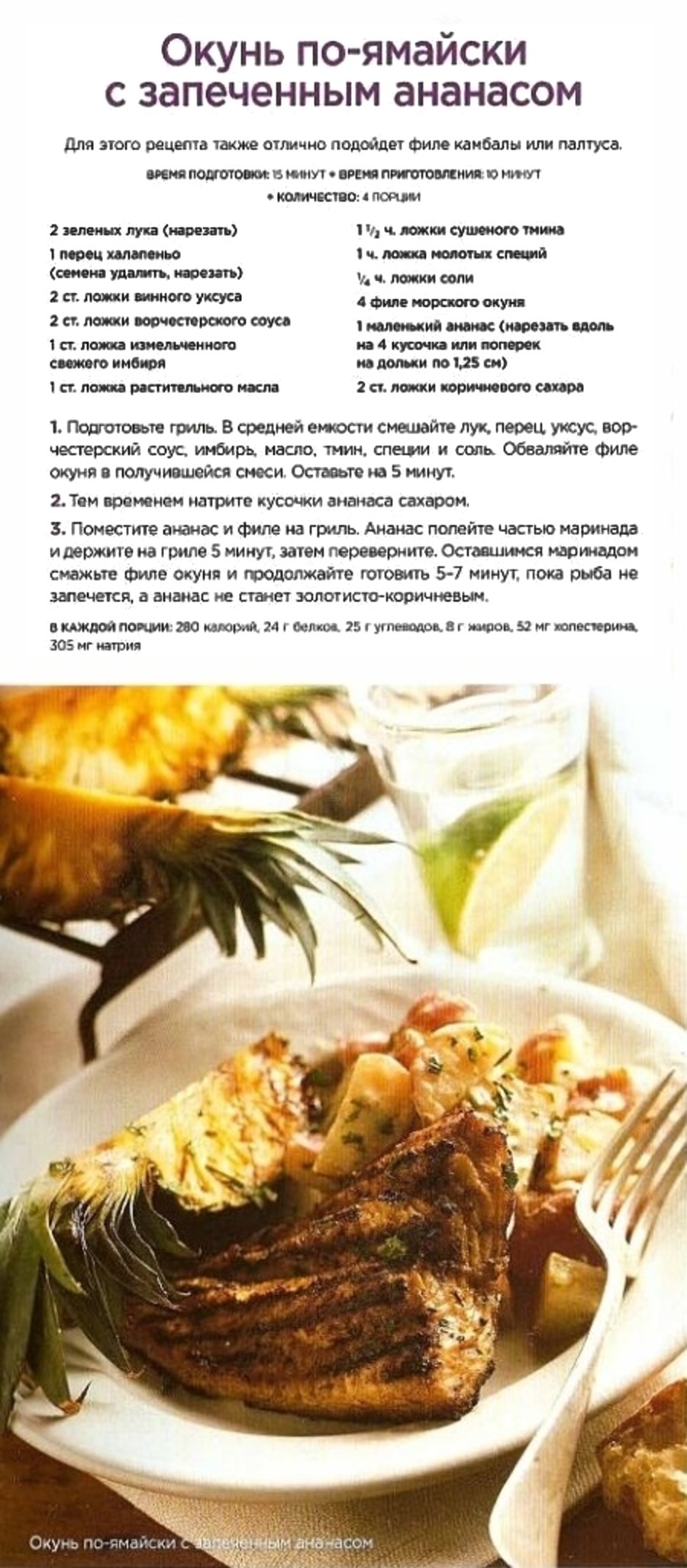 Окунь по-ямайски с запеченным ананасом