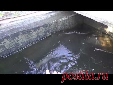 Человек держит руки в емкости с темной жидкостью.