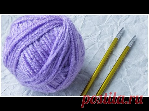 Изображение показывает клубок фиолетовой пряжи и две вязальные спицы на текстурированной поверхности.