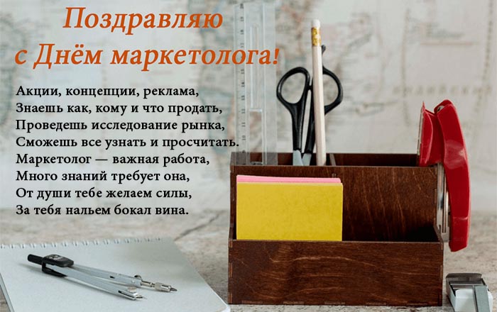 Ты в маркетинге словно рыба в мореИ к важным целям рвёшься напролом.Желаю, чтобы счастье на повтореИграло в настроении твоём.