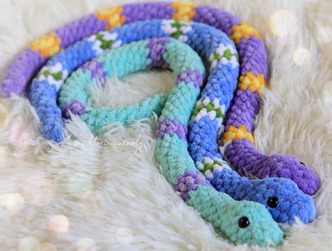 Змейка с полосками крючком. Амигуруми схемы и описания. Автор: Виктория Тайшина | IRINELY.ART