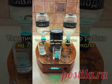 Устройство для наливания, позволяющее одновременно наполнять стаканы и бокалы, с надписями на бутылках "Наливал" и "Вода".