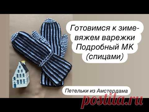 Варежки спицами,подробный МК, двухцветной английской резинкой. #варежки #каквязатьварежки #knitting