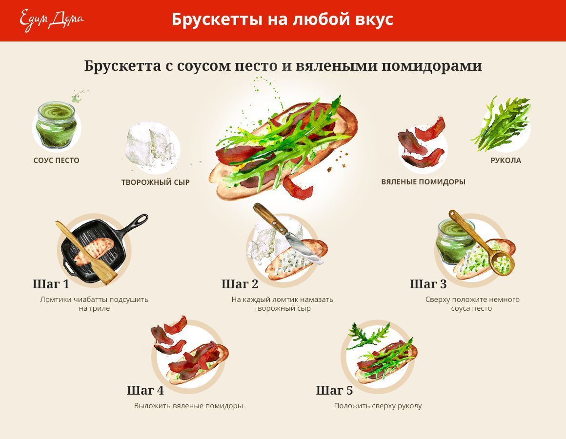 Брускетта с соусом песто и вялеными помидорами от Юлии Высоцкой