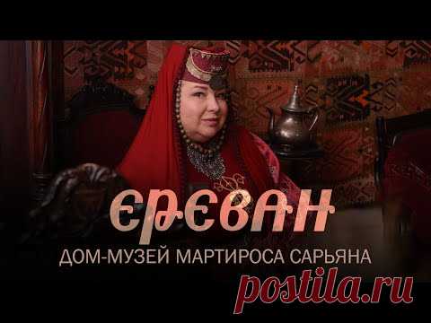 Женщина в традиционной армянской одежде сидит в комнате с восточным интерьером. На фоне надпись: "Ереван. Дом-музей Мартироса Сарьяна".