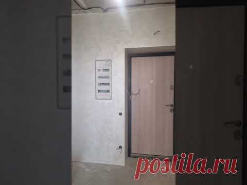 На изображении показан интерьер полуотделанного помещения с железной входной дверью и распределительным щитком на стене.