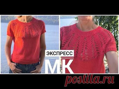 Футболка спицами круглой кокеткой🌺 Экспресс МК#вязаниесверой #knitting #вязаниеспицами