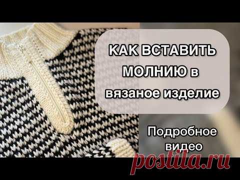 Изображение с текстом о том, как вставить молнию в вязаное изделие, рядом показано само изделие со вставленной молнией.
