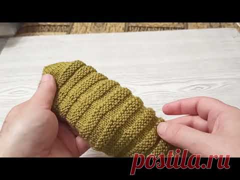 На изображении руки держат вязаное изделие зеленого цвета с рельефным узором.