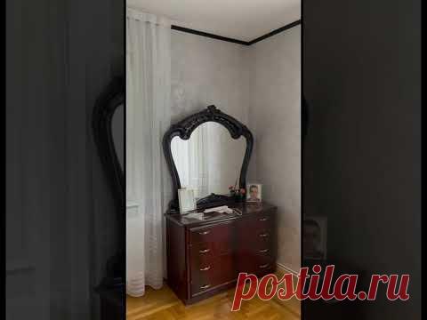 Изображение комнаты с комодом и старинным зеркалом. На комоде находятся фотографии и другие предметы.