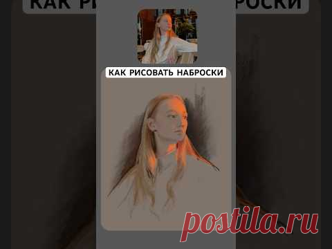 Изображение включает фотографию женщины и её нарисованный портрет. Надпись гласит: "КАК РИСОВАТЬ НАБРОСКИ".