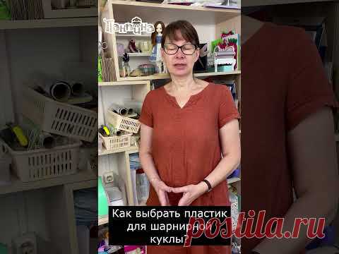 Женщина в комнате с полками и предметами для рукоделия. На изображении текст: "Как выбрать пластик для шарнирной куклы?".