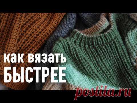 Изображение с вязаными свитерами и текстом "как вязать быстрее".