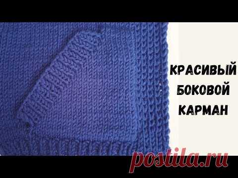 На изображении показан красивый боковой карман на вязке синего цвета. На правой стороне надпись на русском языке, которая переводится как "Красивый боковой карман", а внизу логотип "postila.ru".