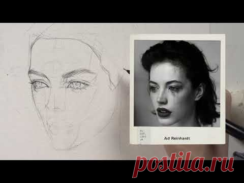 Изображение показывает рисунок лица на бумаге и фотографию женщины в черно-белом формате. Имя "Ad Reinhardt" упоминается на фотографии.