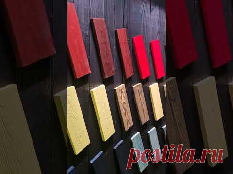 На изображении показаны образцы деревянных панелей различных оттенков и текстур на стене.