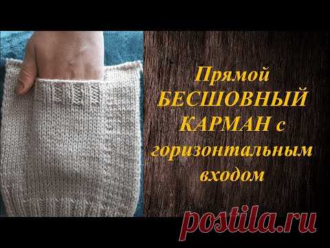 Прямой горизонтальны бесшовный карман (прорезной). Вязание снизу вверх. Мастер-класс для начинающих