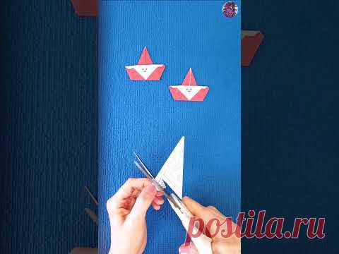 Изображение показывает вырезание бумажного кораблика на фоне двух готовых красных корабликов.