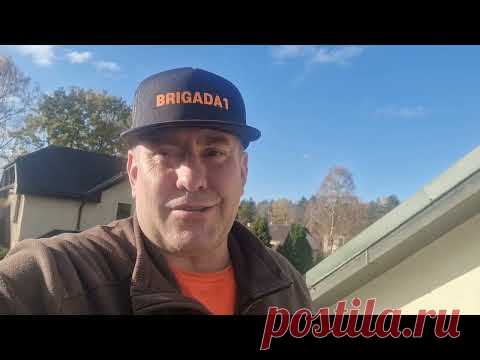 Мужчина в кепке с надписью "BRIGADA1" стоит на улице. На заднем плане дома и деревья.