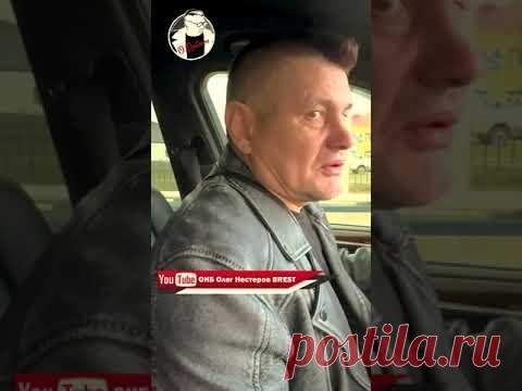Человек сидит в автомобиле и смотрит влево, на изображении видно текст "YouTube ОНБ Олег Нестеров BREST".