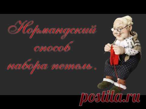 Изображение с текстом "Нормандский способ набора петель" и фигуркой пожилого человека, который вяжет.
