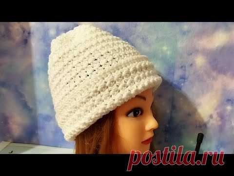 Осенняя шапочка двусторонним узором, крючком. Видео для начинающих.